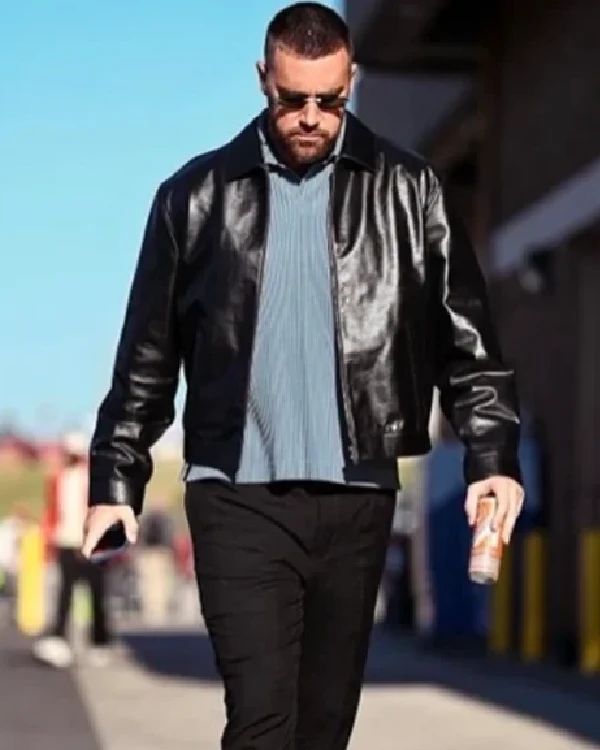 Buy Kansas City Chiefs Travis Kelce Black Leather Jacket for Men and Women