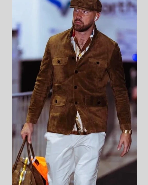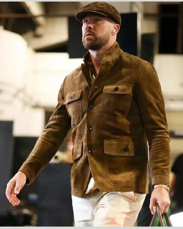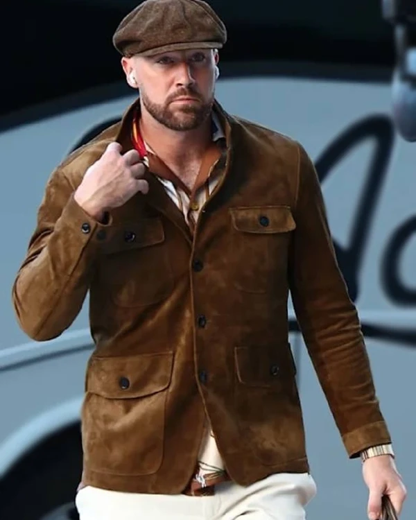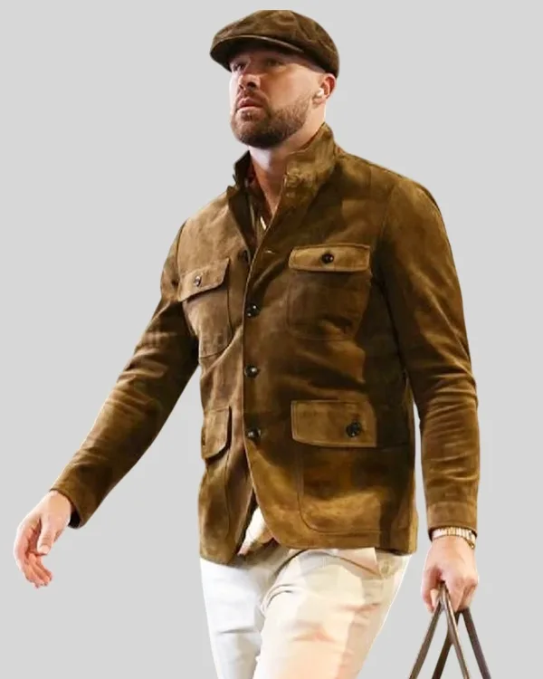 Re-Creation – Buy Travis Kelce Cashmere Brown Suede Military Jacket