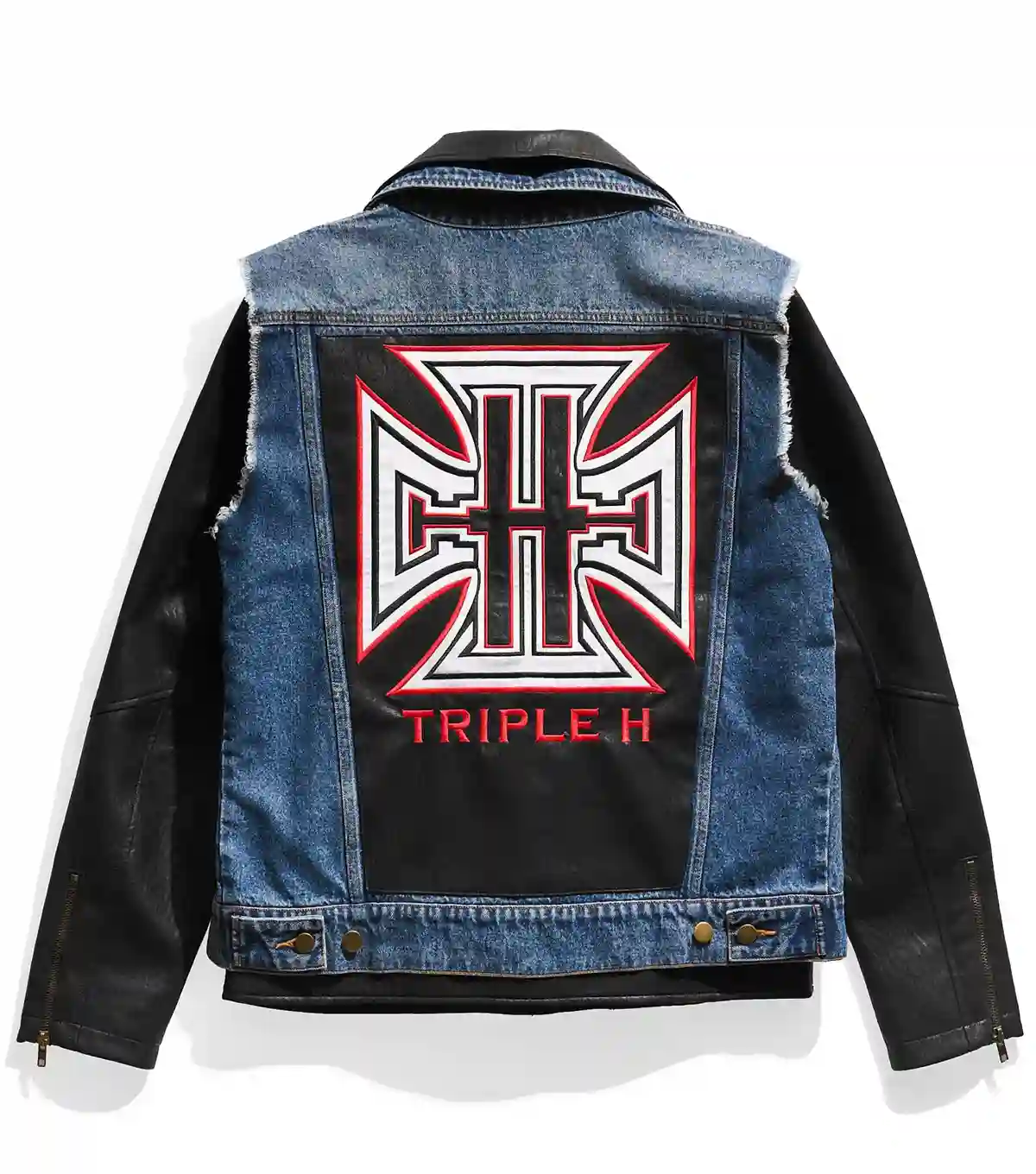 Buy WWE Triple H Denim Leather Jacket on Sale