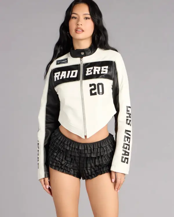 Recreated – Buy Ultra Game NFL Las Vegas Raiders Moto White Jacket
