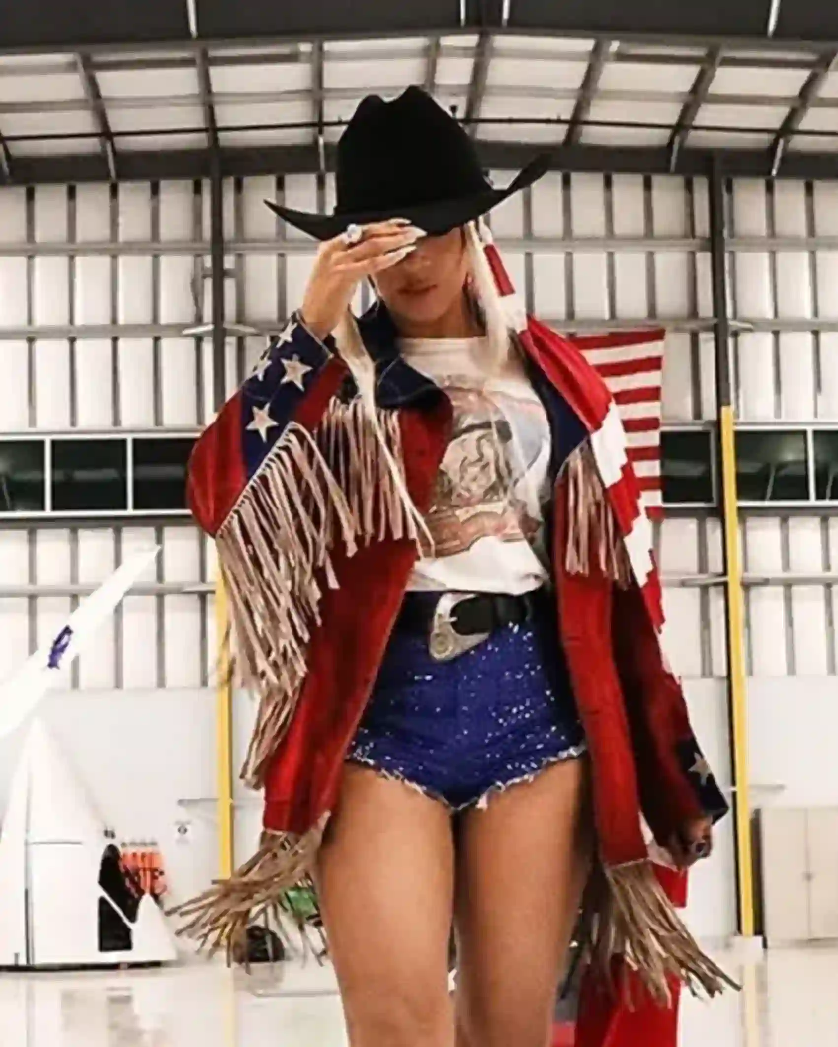 Order Coachella 2024 Beyoncé 1960S Suede Leather American Flag Fringe Jacket Sale