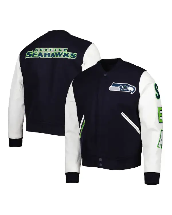 Home / Products / NFL / Seattle Seahawks Jackets / Varsity Navy/White College Seattle Seahawks Jacket