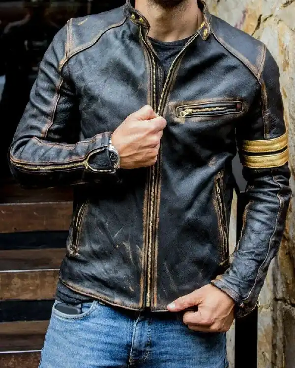 Men’s Vintage Biker Cafe Racer Black Motorcycle Distressed Leather Jacket