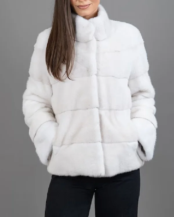 White Short Mink Fur Jacket