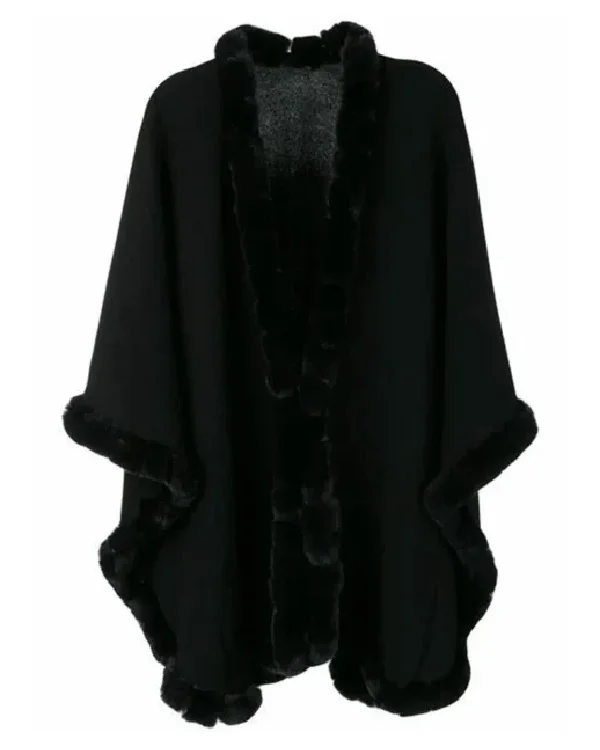 Order Womens Black Cashmere Rex Fur Trimmed Soft Luxurious Winter Cape Coat Sale