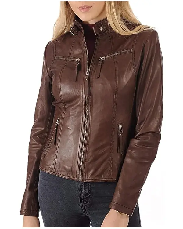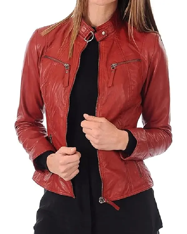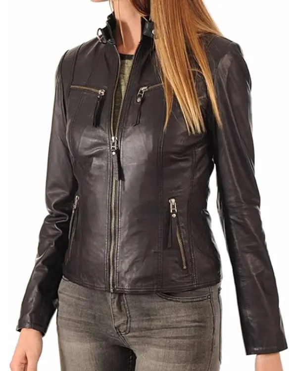 Women’s ROXA Trendy Zip Up Genuine Biker Jacket