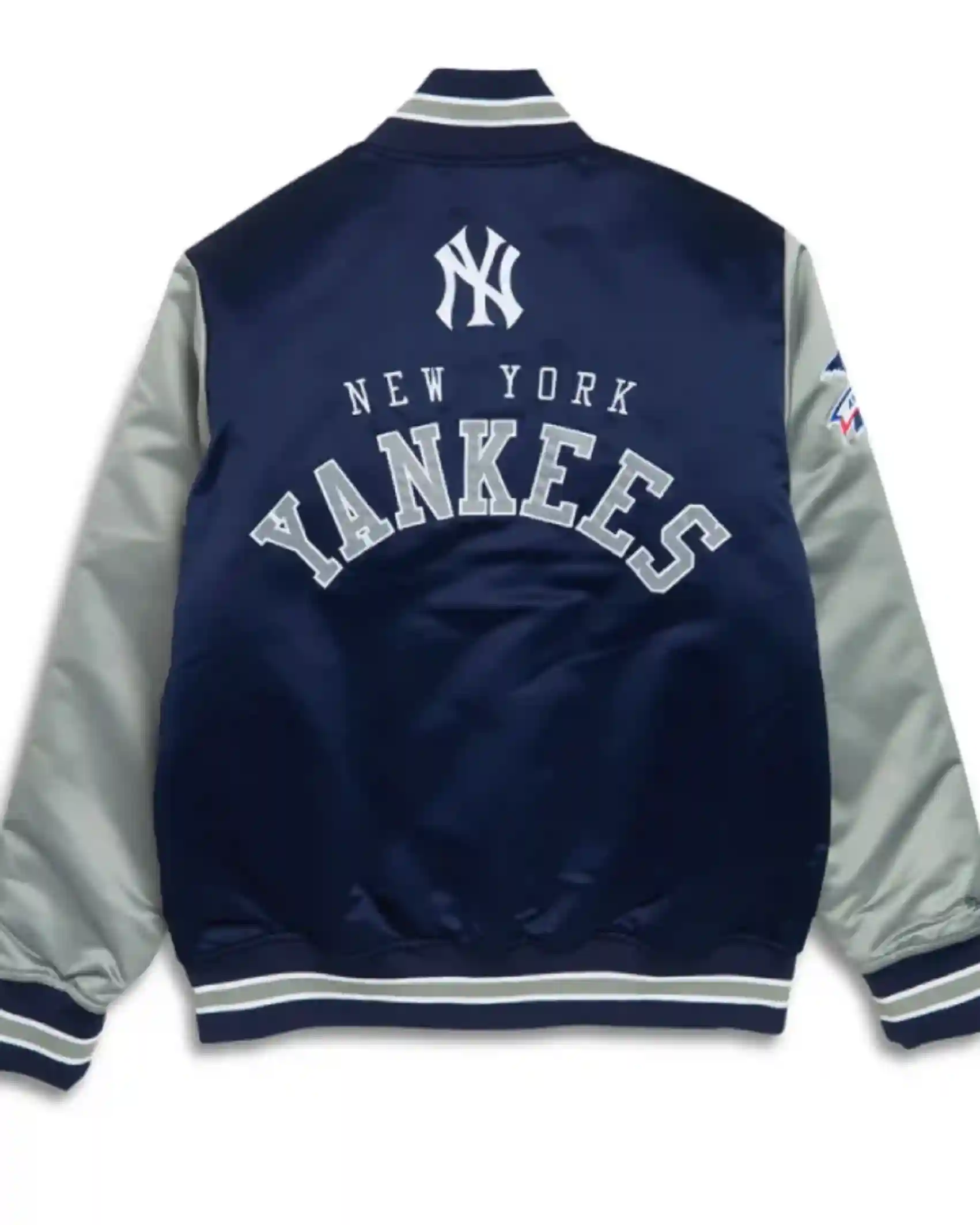 Shop New York Yankees Navy And Grey Satin Varsity Jacket Sale