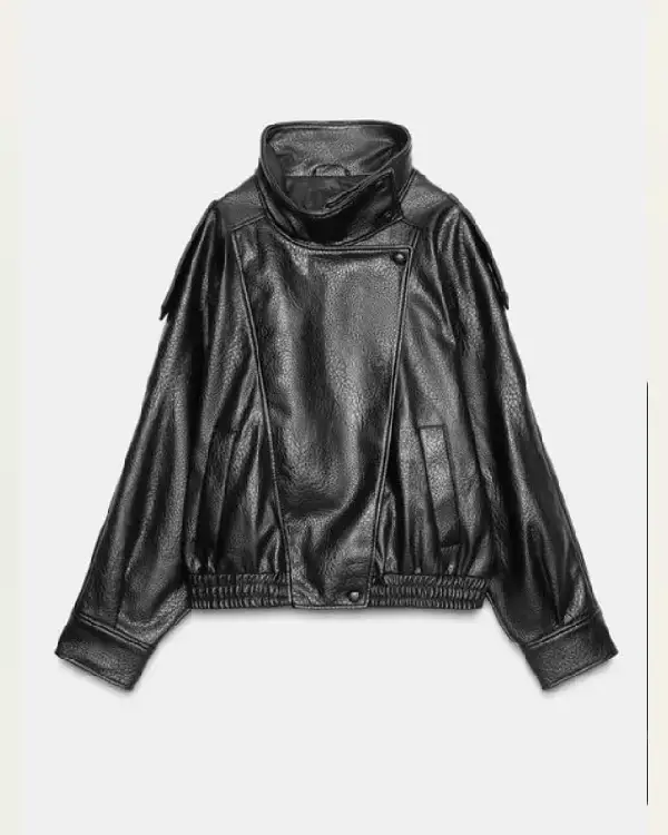 Zara Funnel Neck Leather Jacket